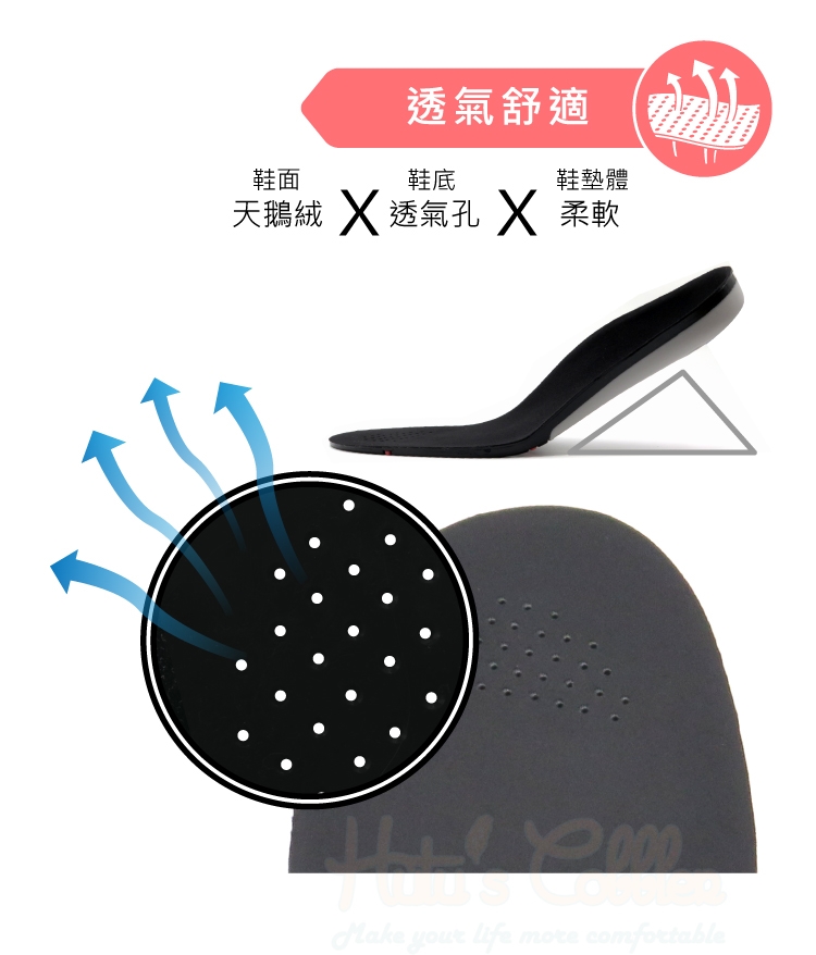 鞋面天鵝絨材質-舒適腳感,透氣不悶腳