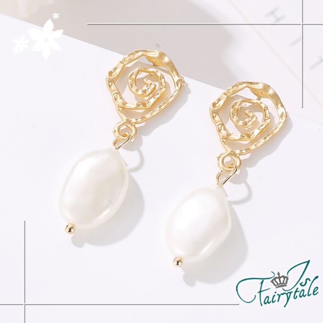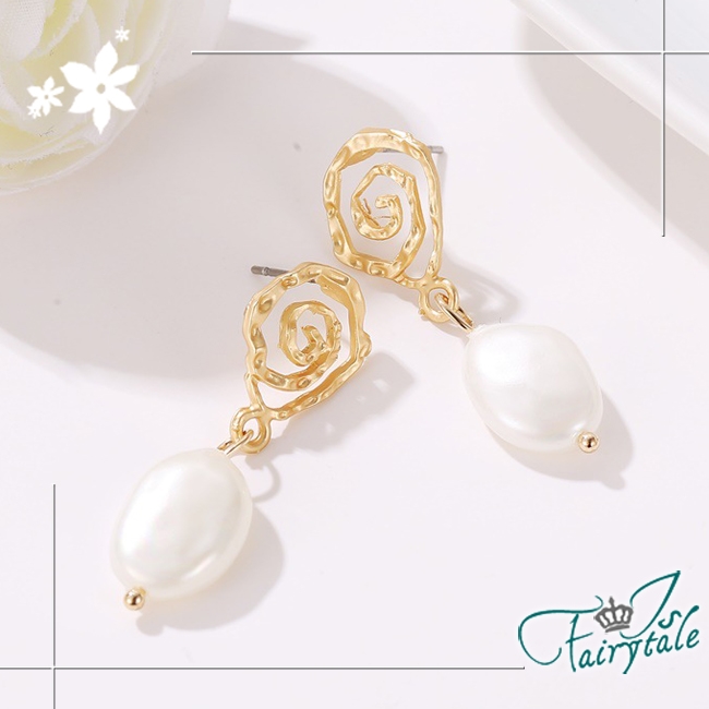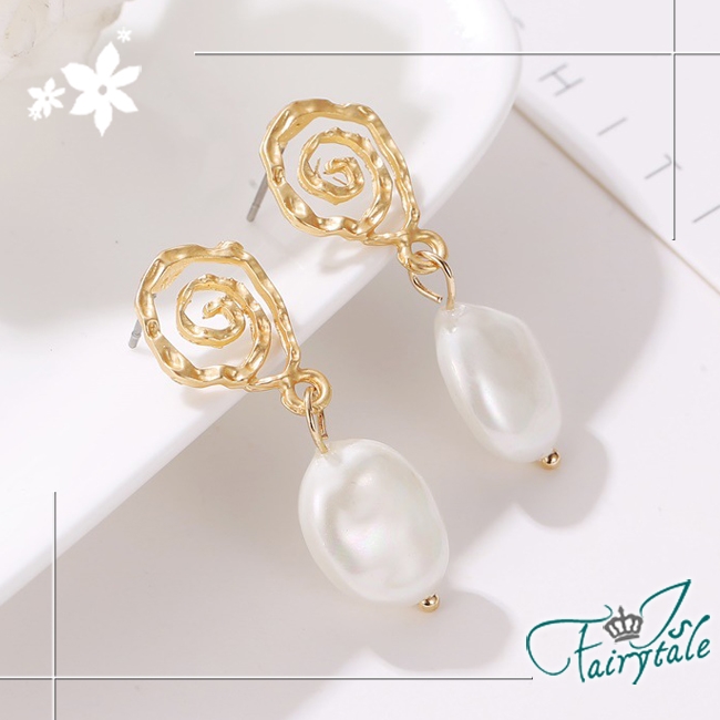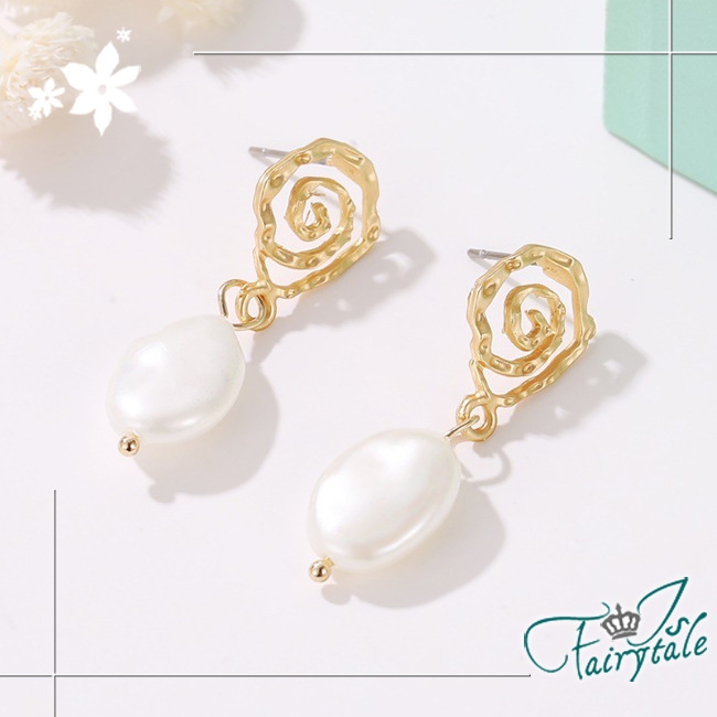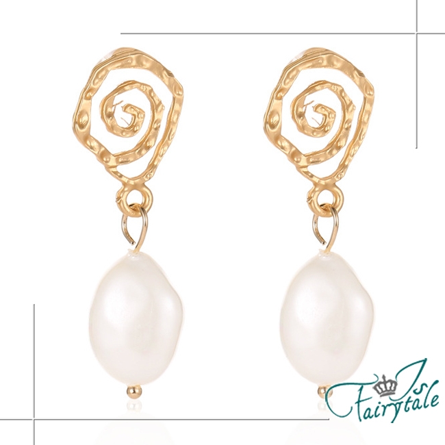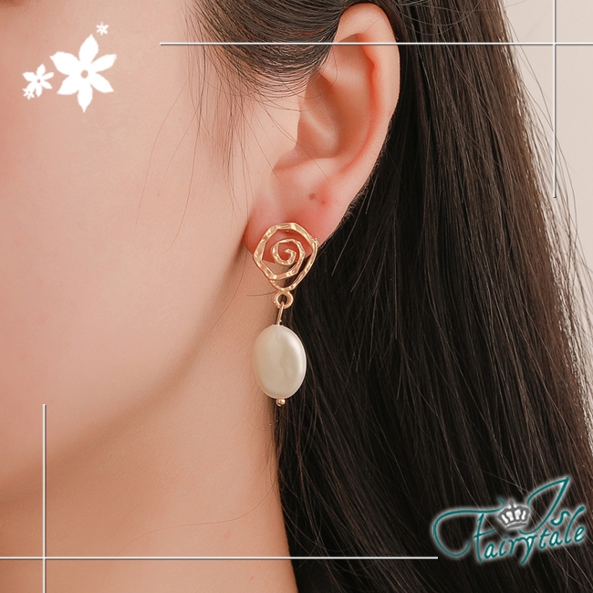 韓版幾何螺旋復古風格,珍珠垂墜耳環不搶自身風采,