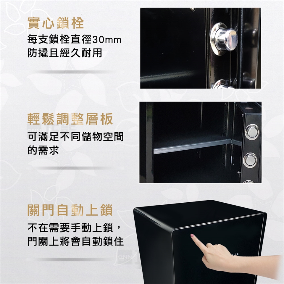 ◆隱藏式自動門栓,外力難以得逞,密碼3次輸入錯誤,警報器會響起。