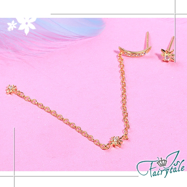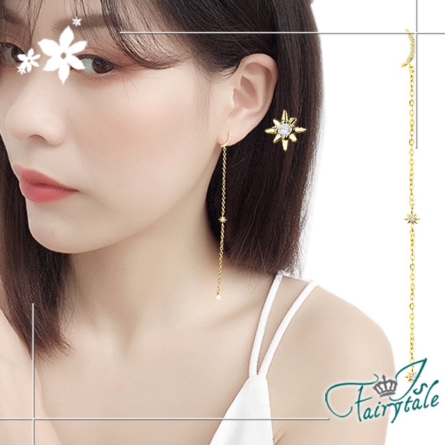 日韓風格太陽光芒與月亮,閃耀金繽色耳環韓風氣質款式,