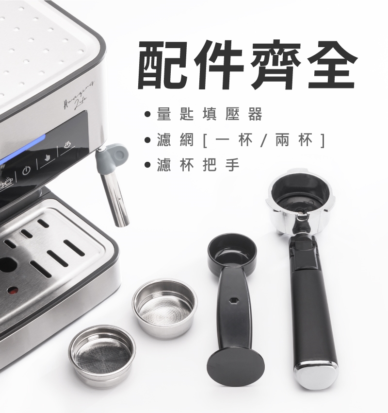 附件:說明書x1、量匙填壓器x1、一杯濾網x1、兩杯濾網x1、濾杯把手x1