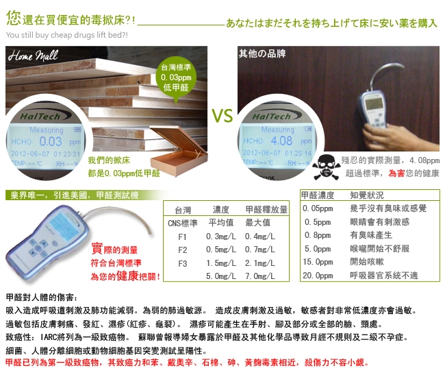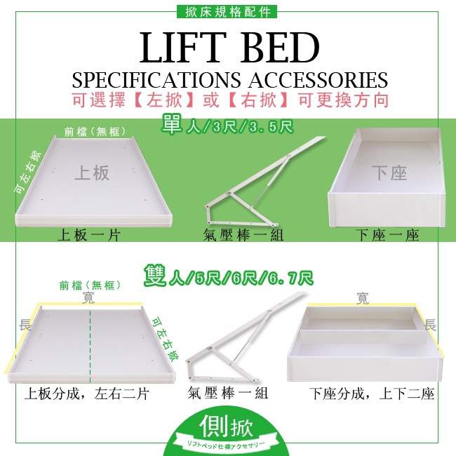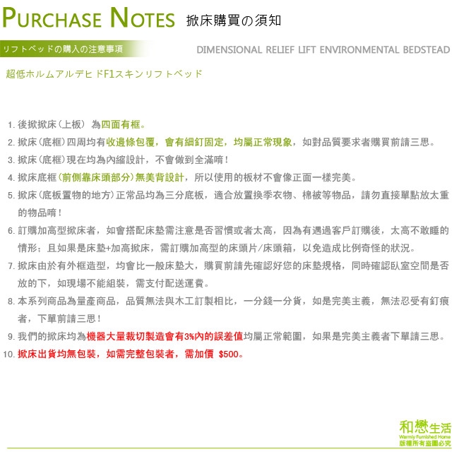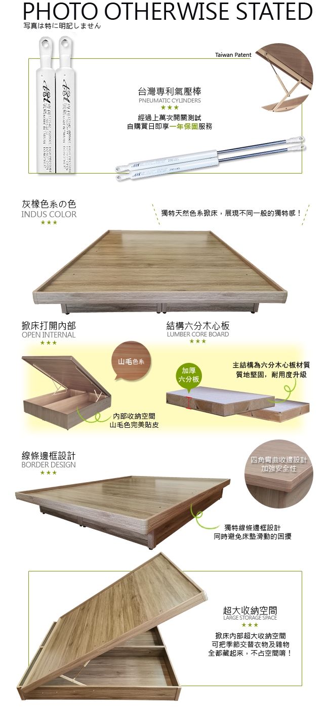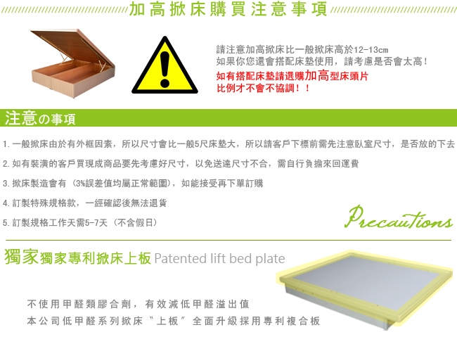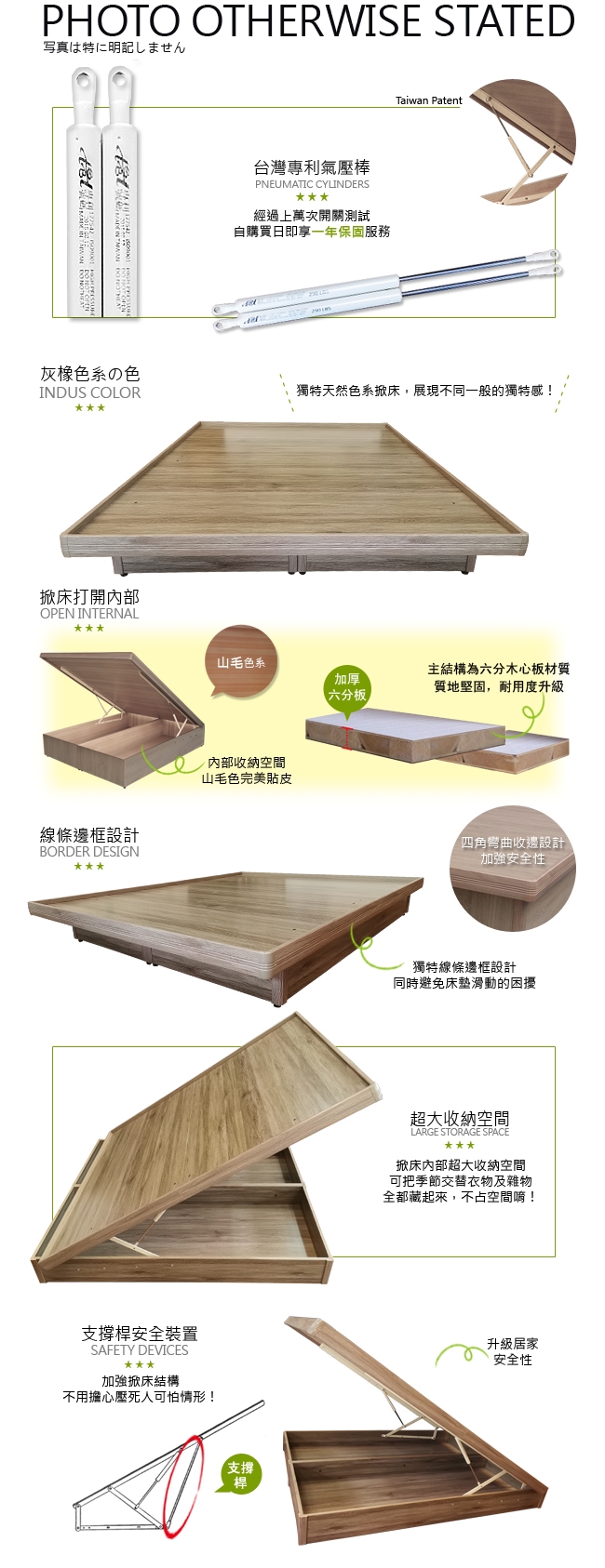 • 掀床木料採用F3低甲醛材質,不易有甲醛味