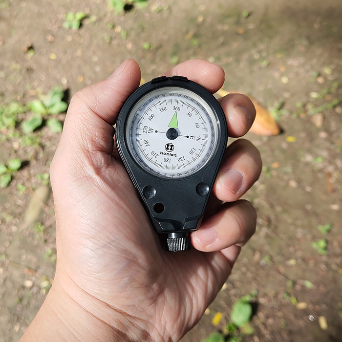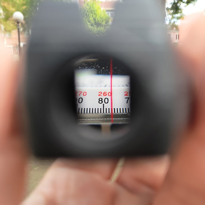 轉盤形式:內圈 - 360度方位角;外圈 - 360度方位角 (黑字讀數對應內圈)