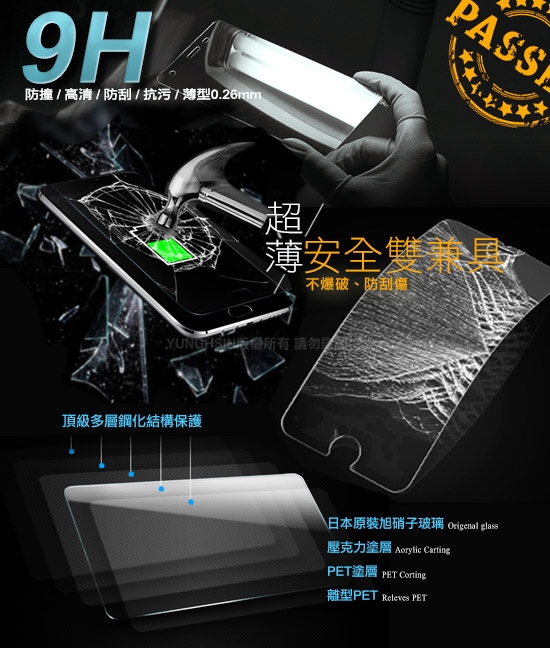 高密度的9H硬度,有效保護手機螢幕,