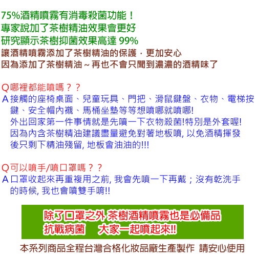 💕因為添加了茶樹精油~再也不會只聞到濃濃的酒精味了;