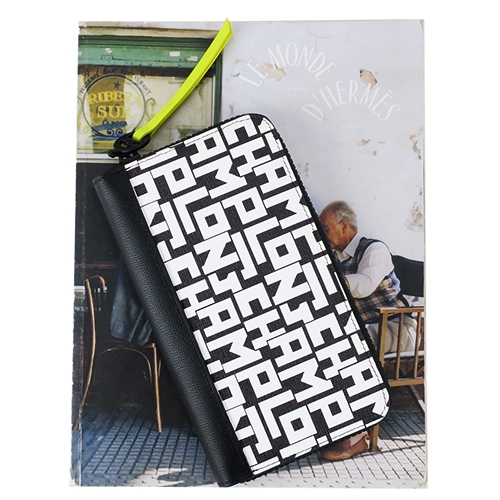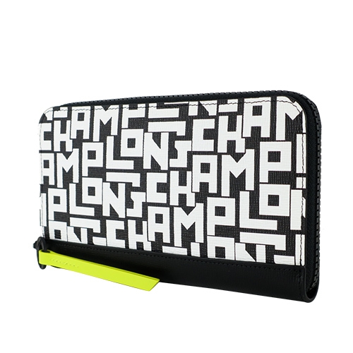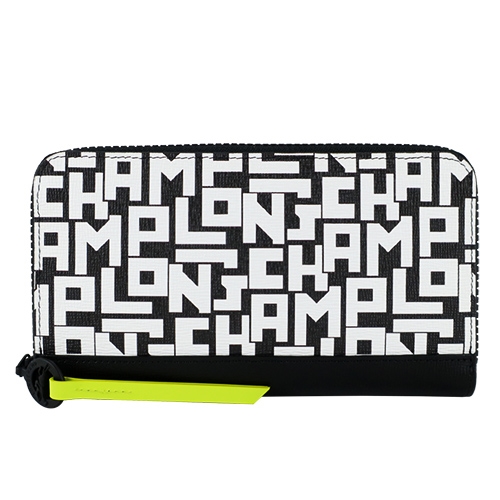 LONGCHAMP LE PLIAGE LGP系列滿版字母拉鍊長夾(黑X白)