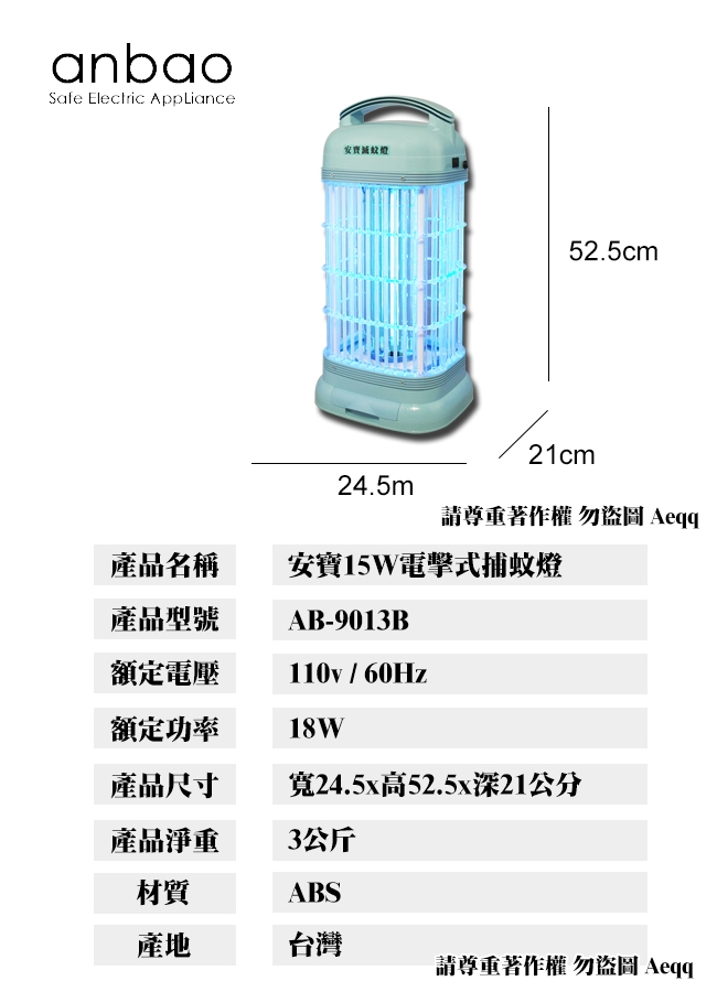 【Anbao 安寶】15W電擊式捕蚊燈(AB-9013B)