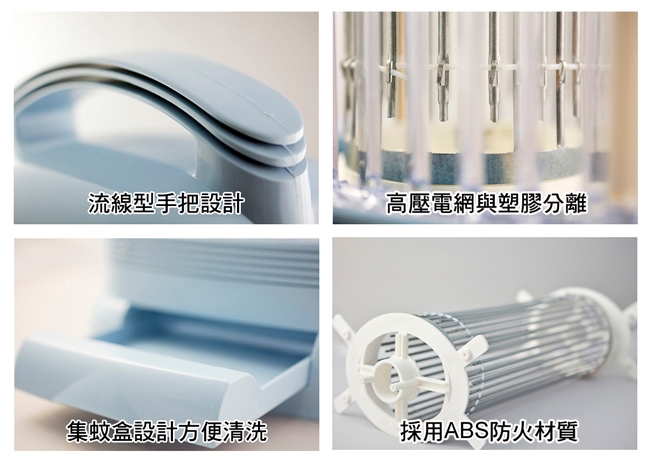 ★ 利用捕蟲燈管來引誘蚊子等昆蟲進入滅蚊器內,然後由對人沒危險的直流電觸殺