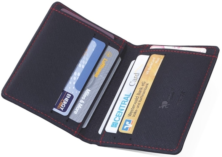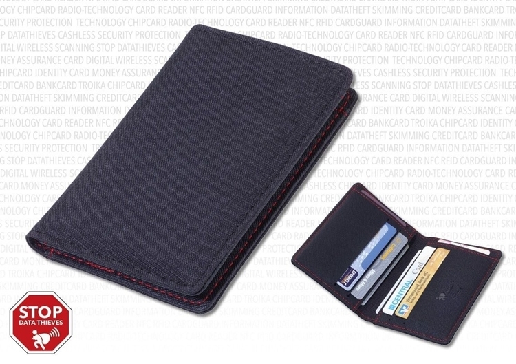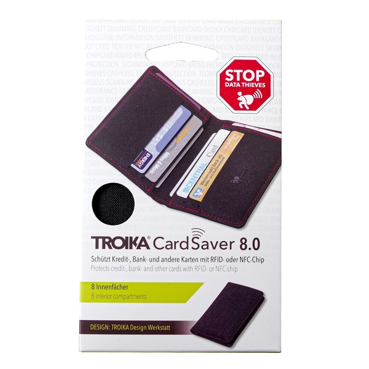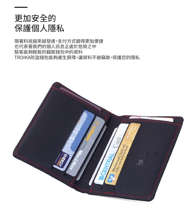 ●【品名】德國TROIKA防感應防RFID信用卡防盗刷屏障皮夾錢包CAS08/BK(8個夾層;聚脂纖維;重58克)防資料竊取防駭客旅行皮夾