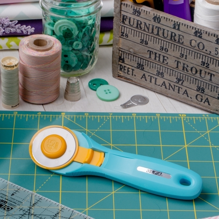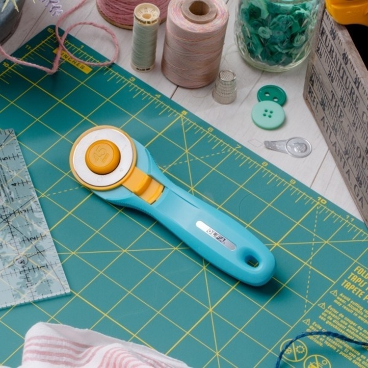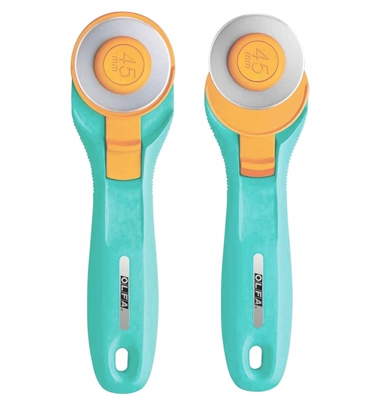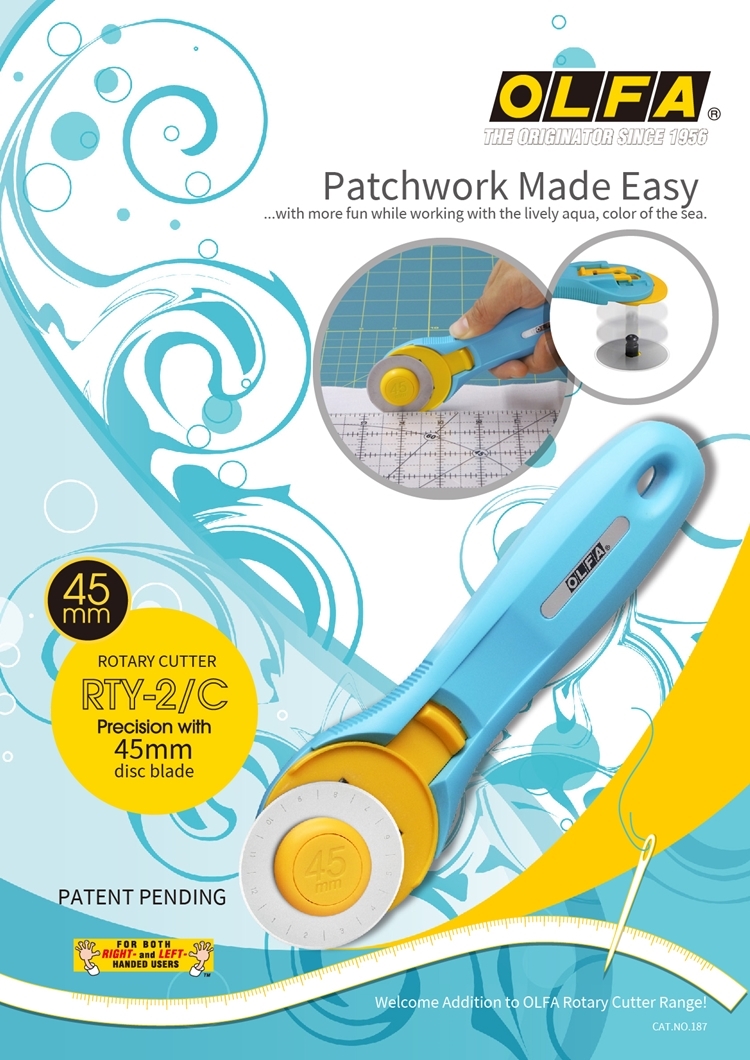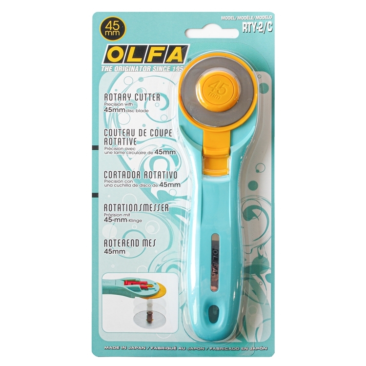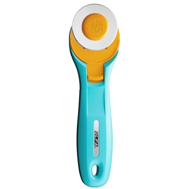 ●【品名】日本OLFA滾輪式45mm切割布刀拼布刀RTY-2/C水藍(右左手皆適)旋轉刀切圓刀圓形刀