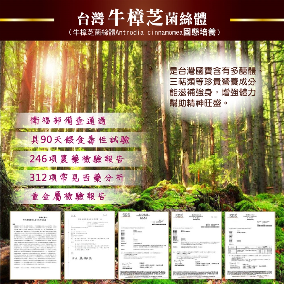 (本品採用牛樟芝菌絲體Antrodia cinnamomea固態培養)