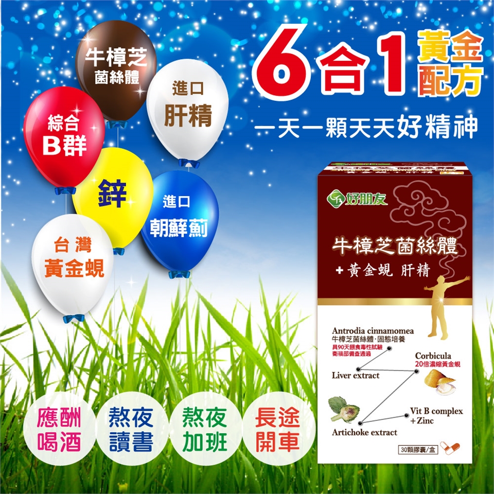 【牛樟芝菌絲體】:是台灣國寶含有多醣體、三帖類等珍貴營養成分,能滋補強身,幫助精神旺盛。