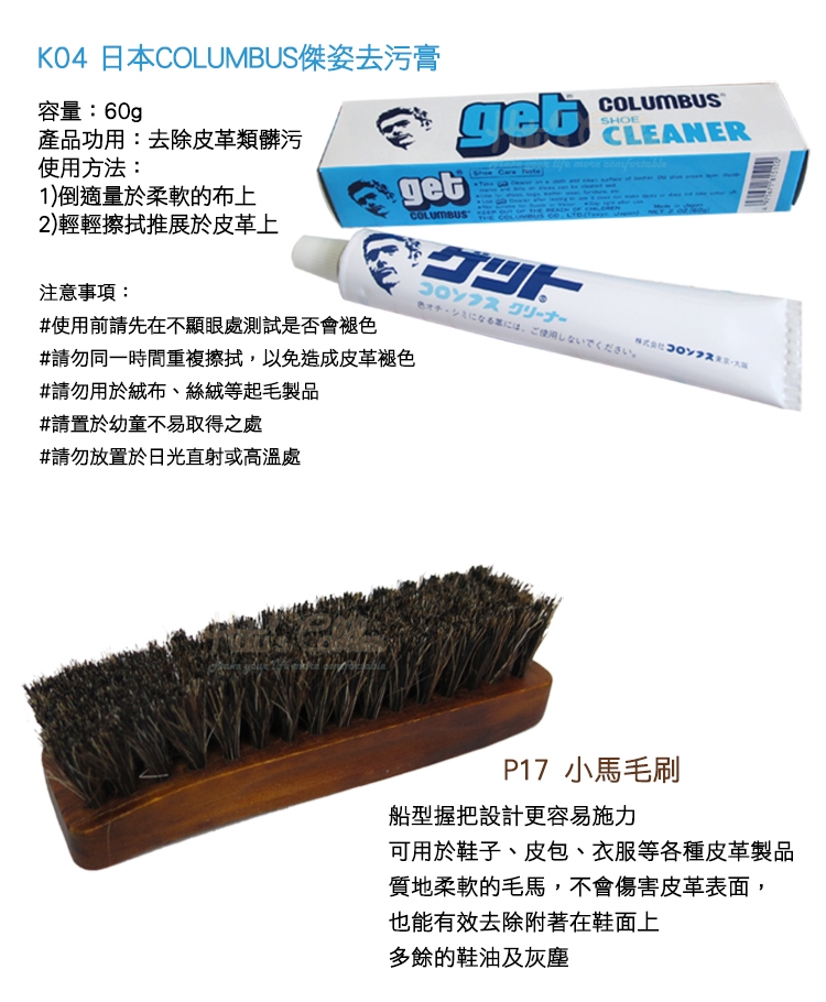 用馬毛刷清除皮革上的髒汙、灰塵。