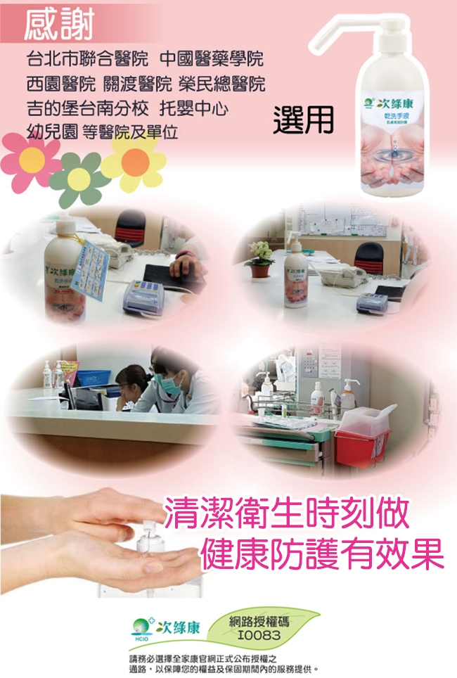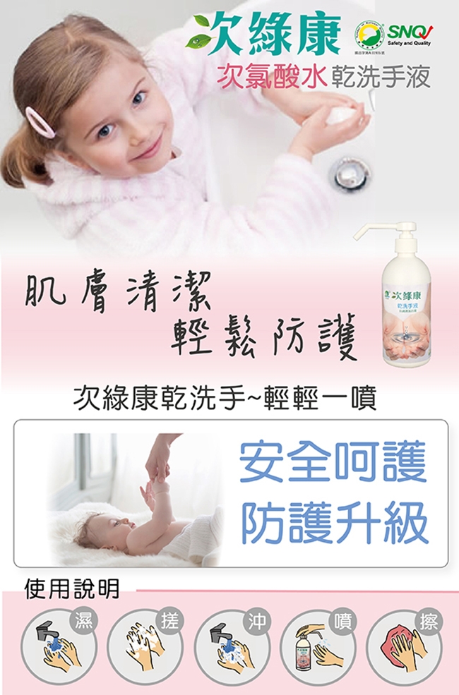 【次綠康】次氯酸乾洗手液500ml(HWWS)