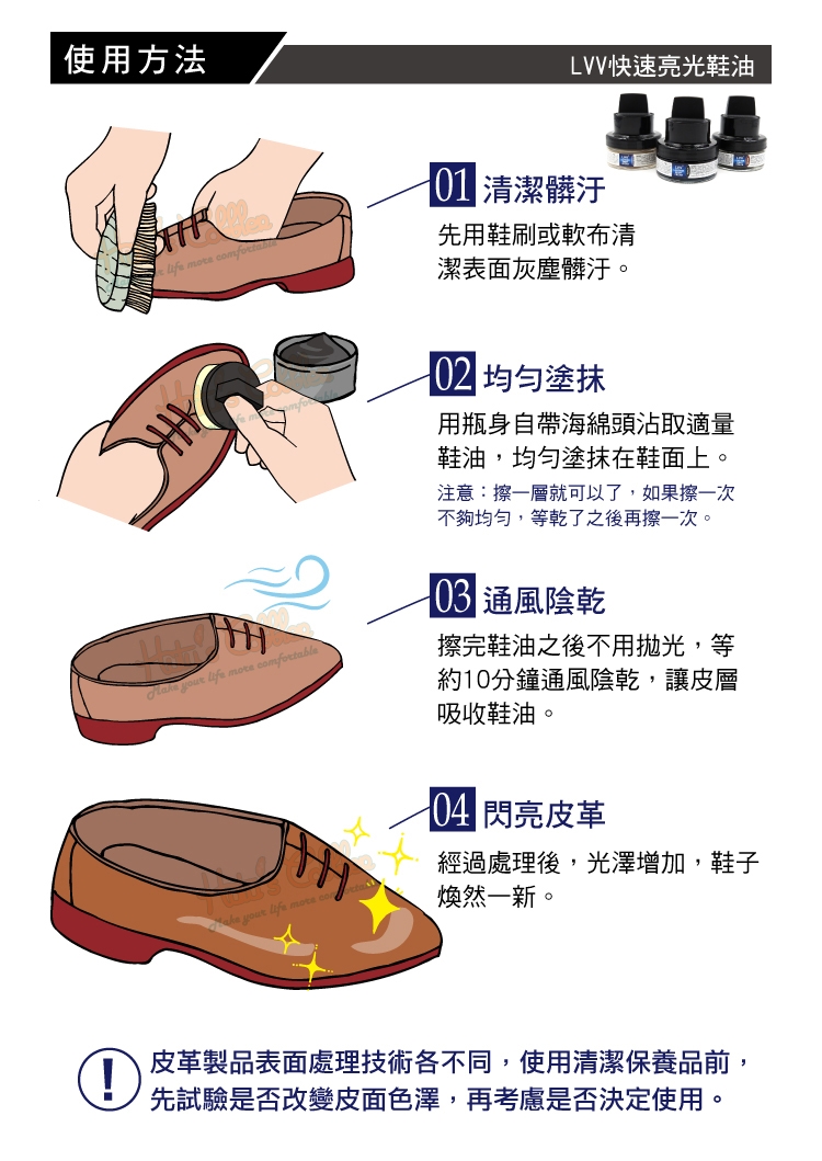 無須準備鞋刷工具,使用快速方便,閃亮皮革