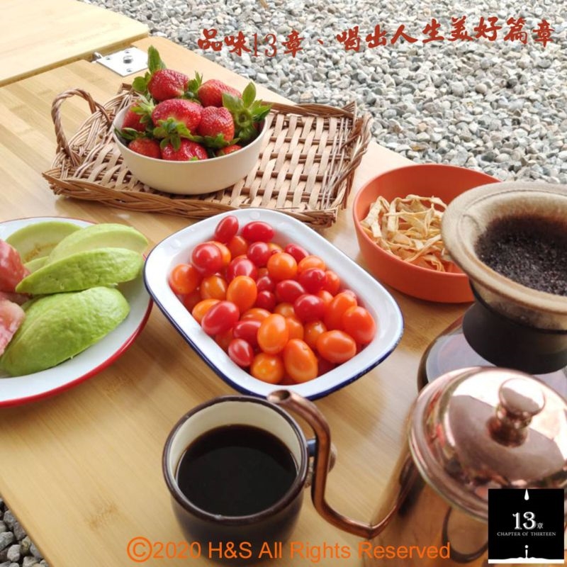 【13章】的由來,可是諸多巧合及用心良苦下命名的。我們製作及包裝的過程共有13道關卡,在定時定量的磨粉、接粉及過磅等裡外兩次封裝時間等控制需在13秒以內完成。另外,如黃金曼特寧一公克萃取13ml的份量、夏威夷可娜與麝香貓豆每包以13公克萃取150ml為最佳,即便連創辦人宜蘭的老家門牌號碼也是13號,所以取名【13章】也是順理成「章」。