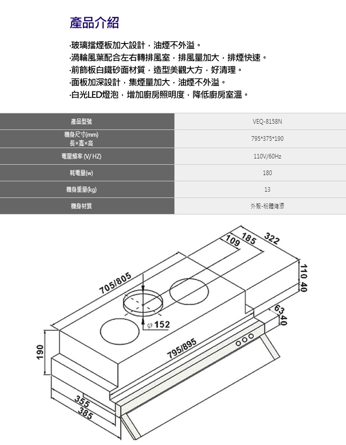 抽油煙機:購買前請先確認--住家安裝位置、尺寸大小、商品顏色,一經安裝恕不退換。