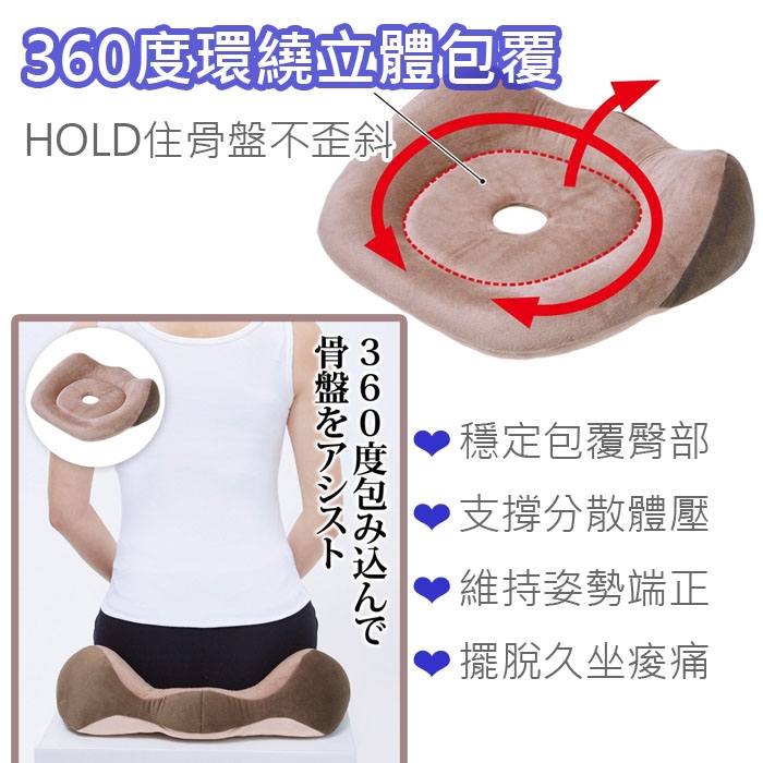 1. 方形360度環繞立體包覆,HOLD住骨盤不歪斜,完美維持優雅坐姿。
