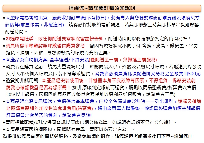 選購前請先量好家中擺放位置的長寬高, 以免尺寸不合會產生空趟費~