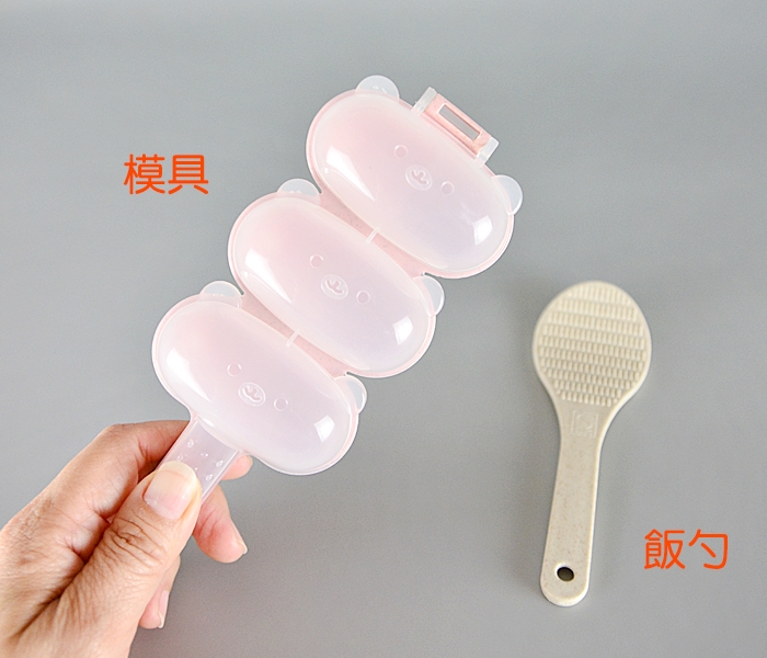 ※如果米飯比較黏,要在模具上先刷點油更易成型喔