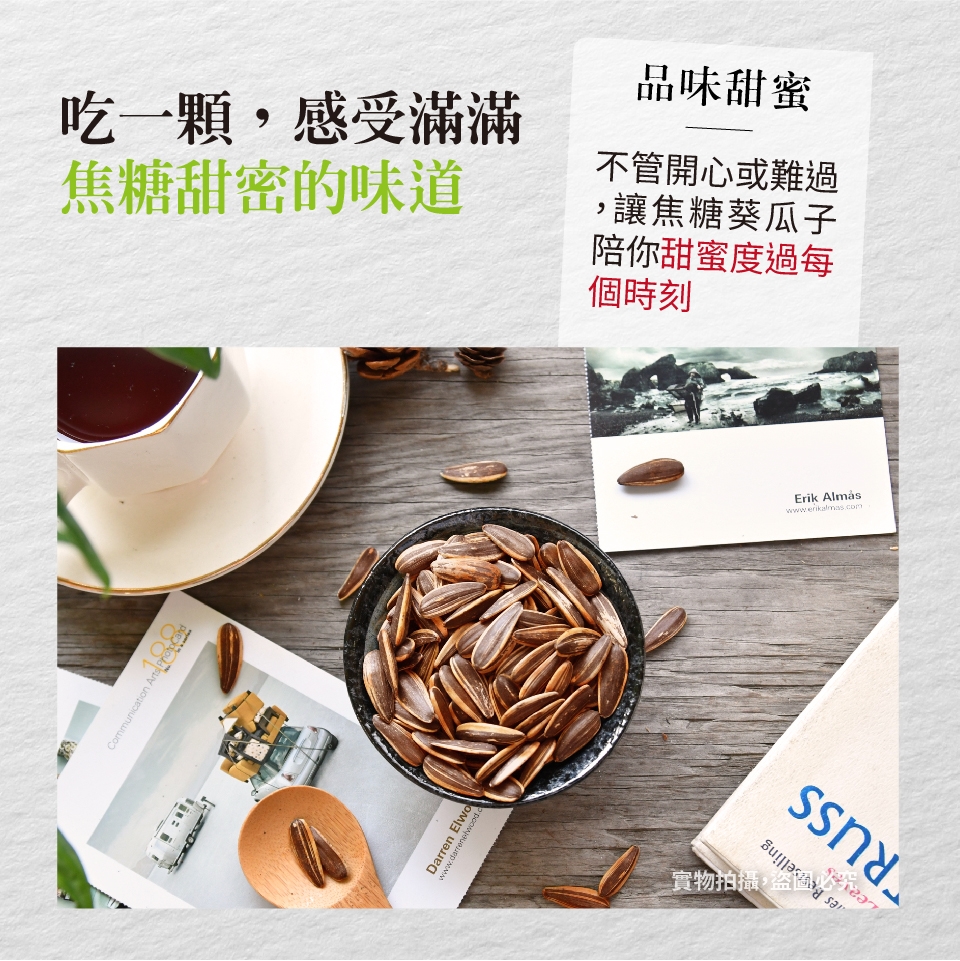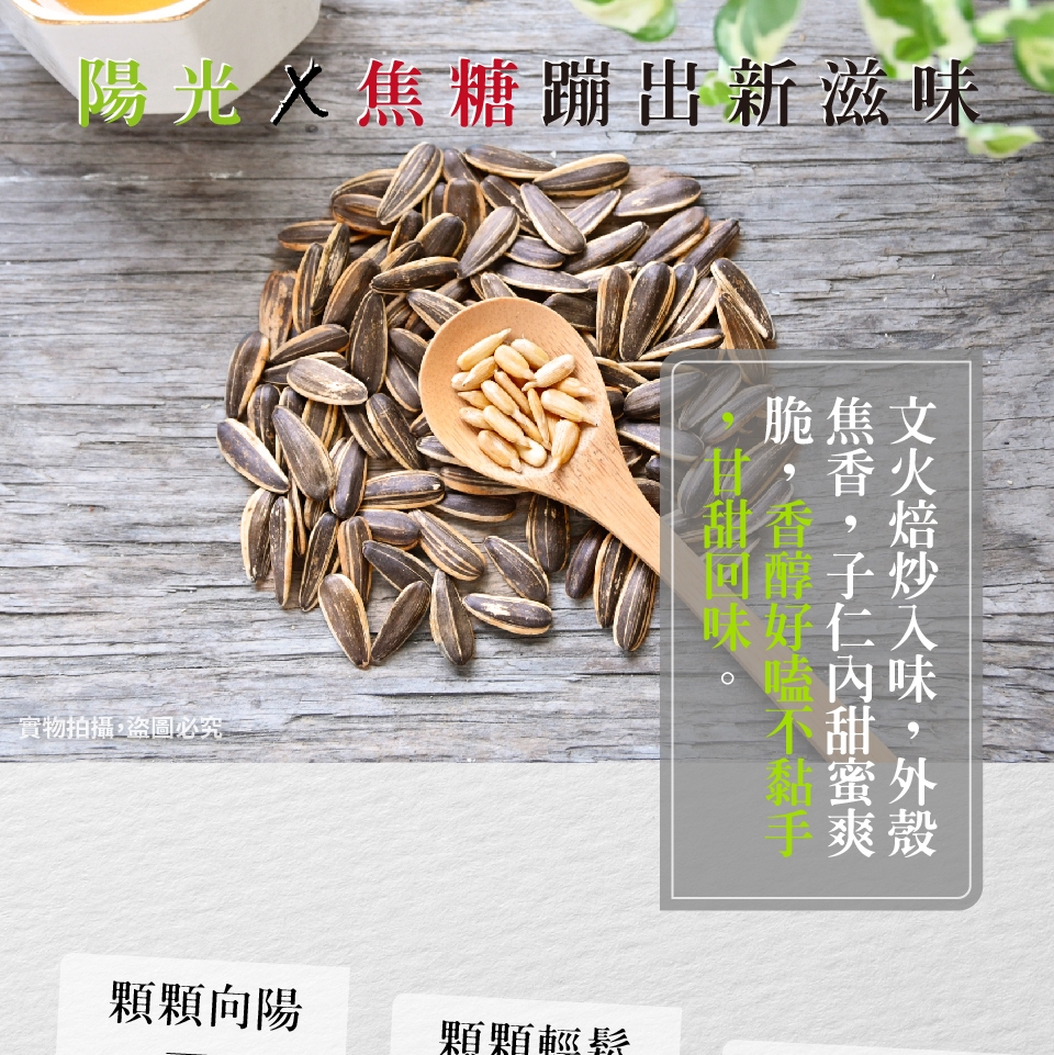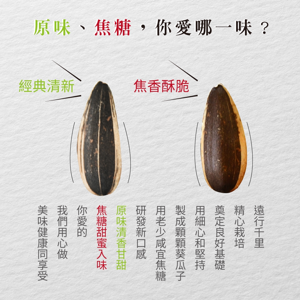 成份:葵瓜子、砂糖、食鹽、醋磺內酯鉀(甜味劑)、蔗糖素、赤砂糖、黑糖、味素、香料(乙基麥芽醇、乙基香莢蘭醛、調味劑(L-麩酸鈉)