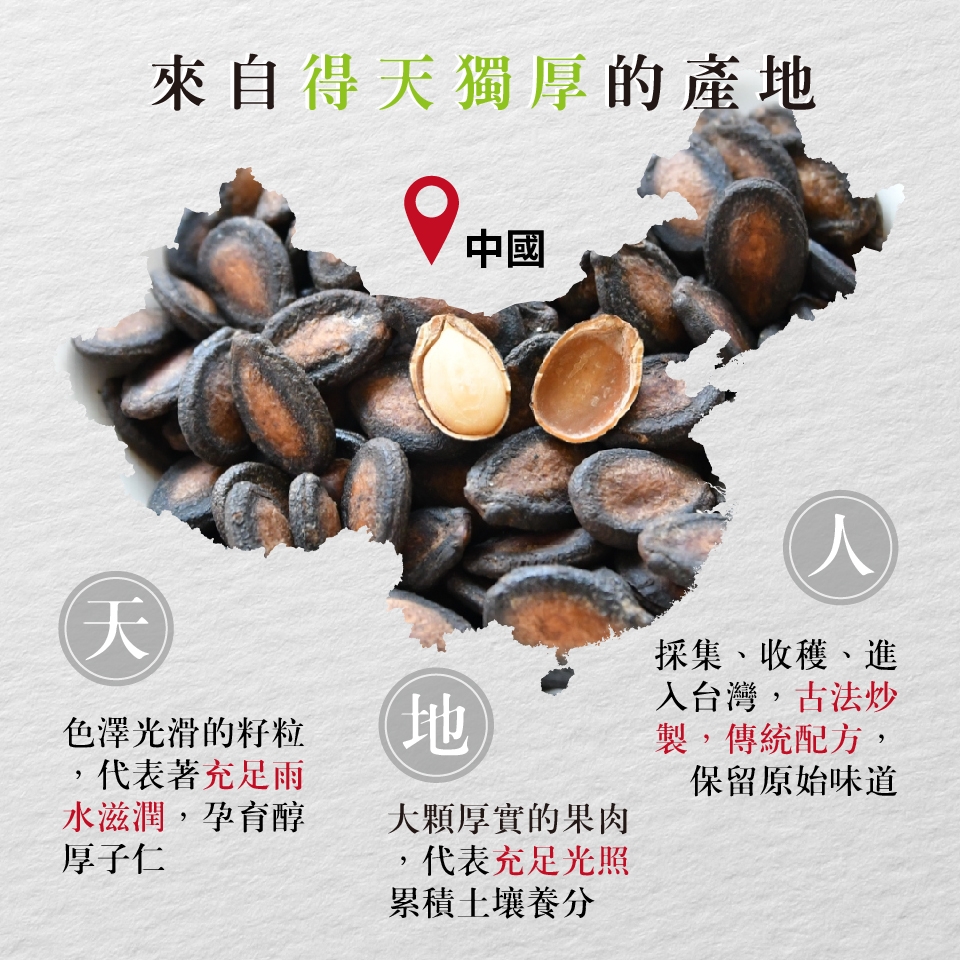 成份:特選瓜子、甘草、丁香、八角、桂枝、食鹽、醋磺內酯鉀(甜味劑)