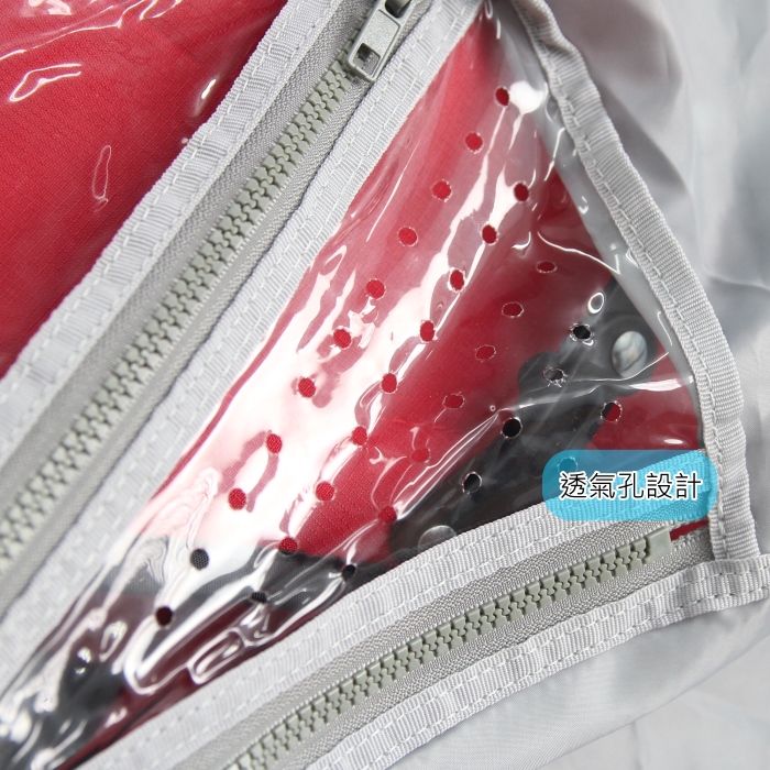 - 特殊拉鍊透氣窗,黏扣帶固定輕巧方便