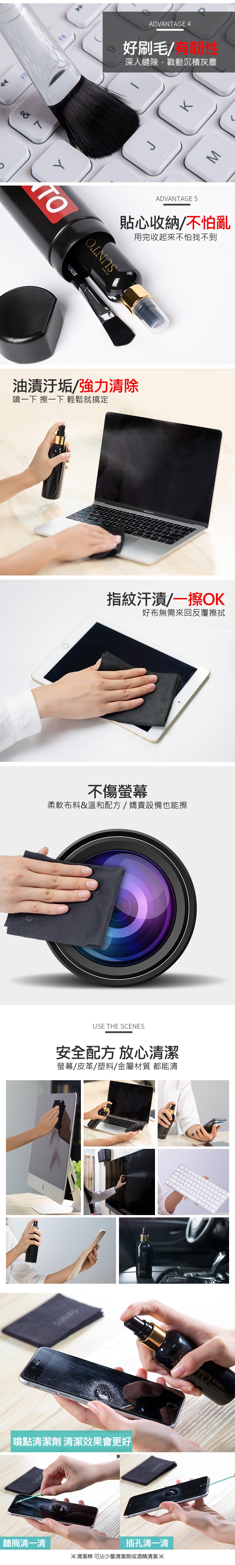 螢幕/皮革/塑料/金屬材質/玻璃 都能清潔