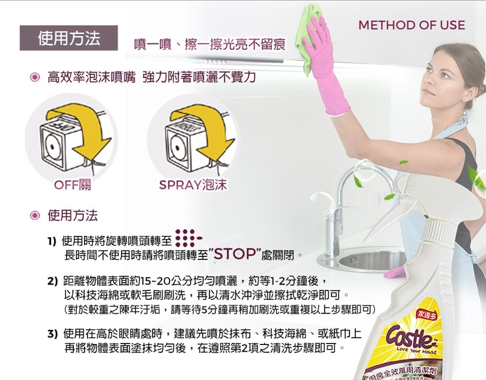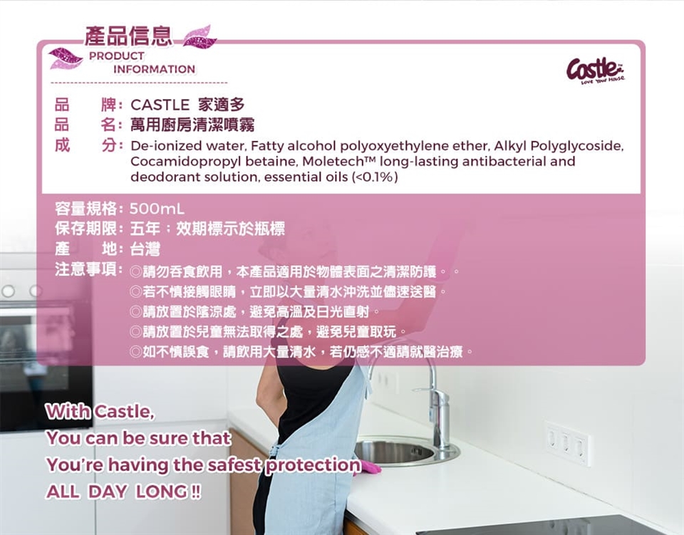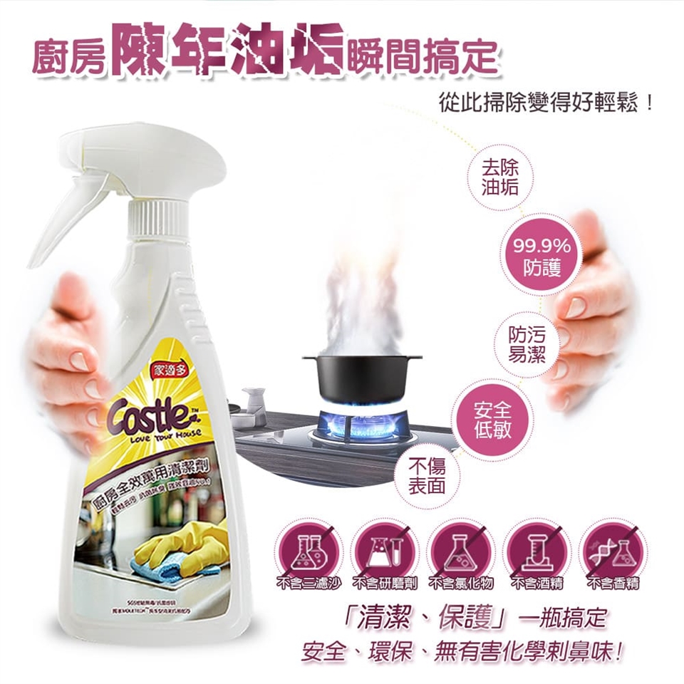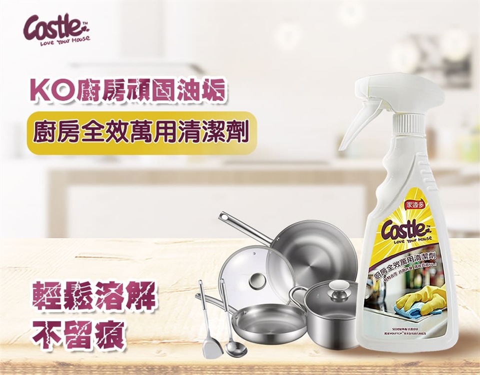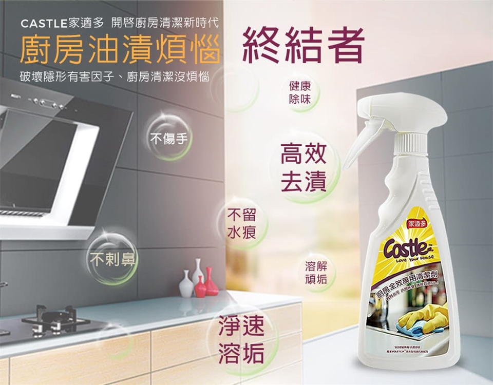 《Castle 家適多 廚房全效萬用清潔劑》幫您輕鬆解決廚房清潔難題,讓廚房重回明亮清新。