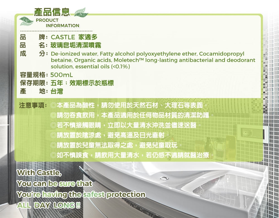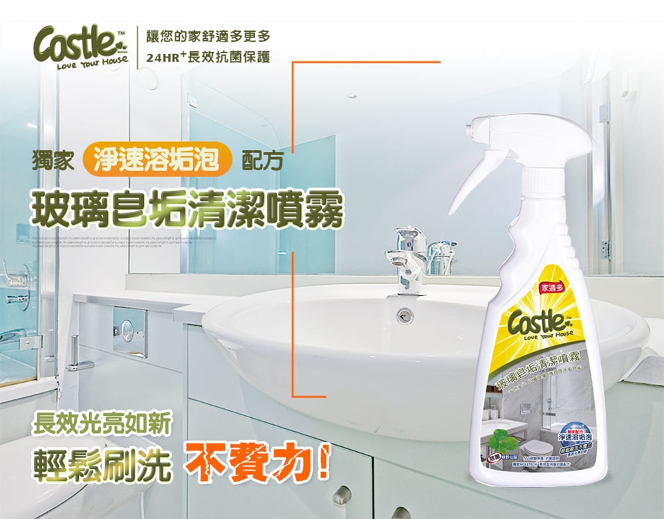 《Castle 家適多 玻璃皂垢清潔噴霧》讓清潔變得超簡單!