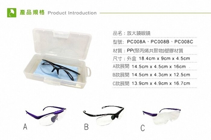 - A款:尺寸為寬14.5 x 高4.5 x 鏡腿長 x 16 cm