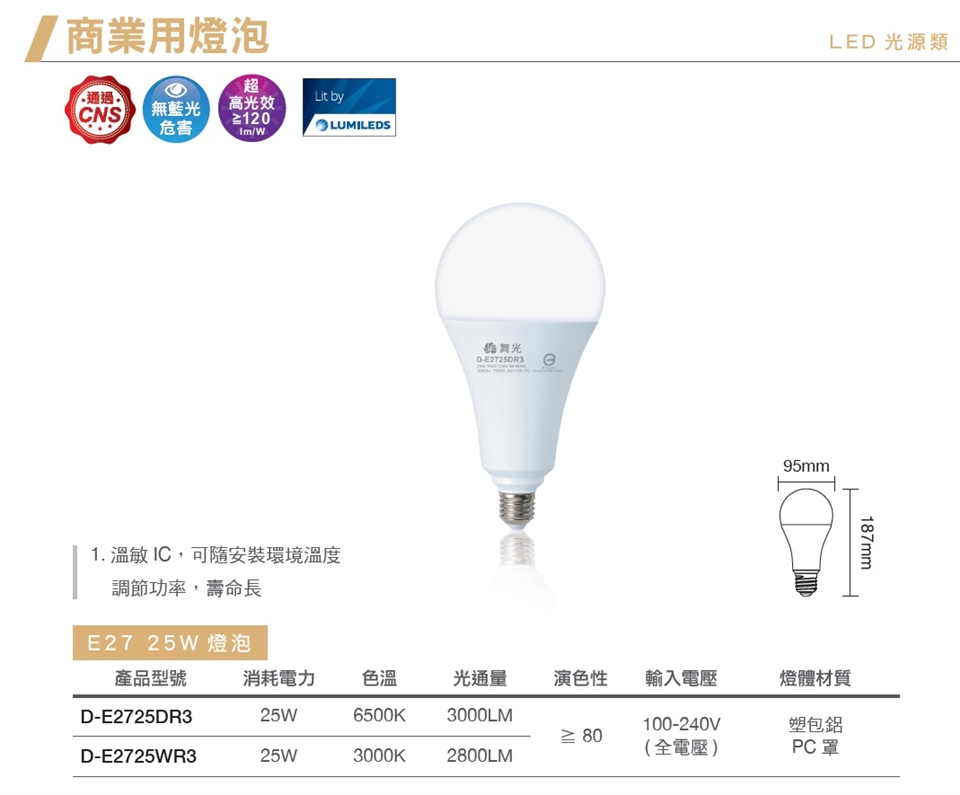 舞光 25W 全電壓 大廣角球泡燈 (5入)