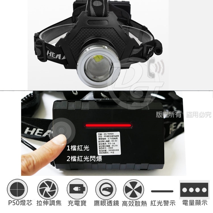 ◎品名:OSAKI P50燈芯超強光變焦頭燈 OS-TD630