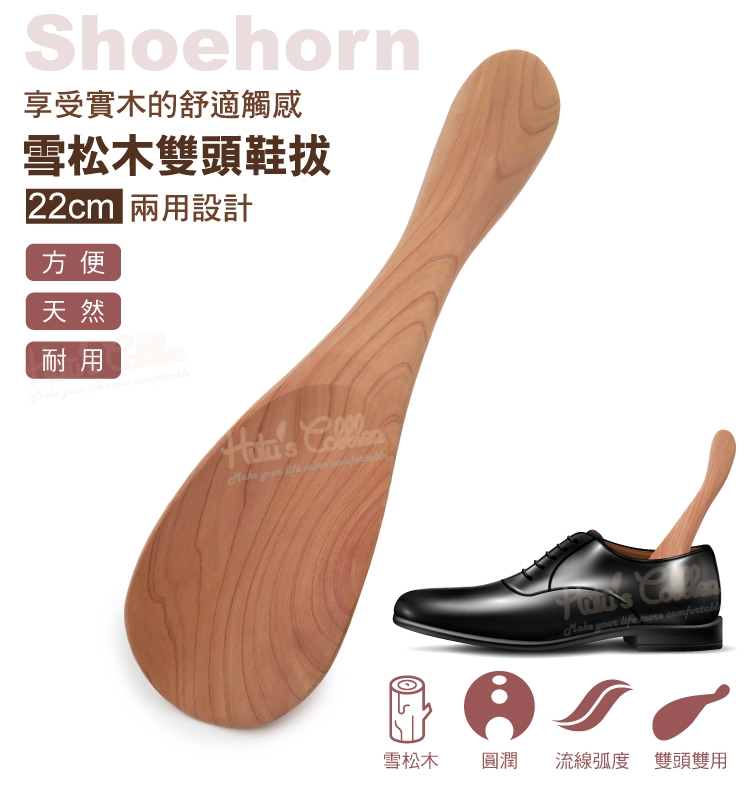 .糊塗鞋匠 優質鞋材 A80 雪松木雙頭鞋拔22cm 1支 實木鞋拔 木質鞋拔 穿鞋器