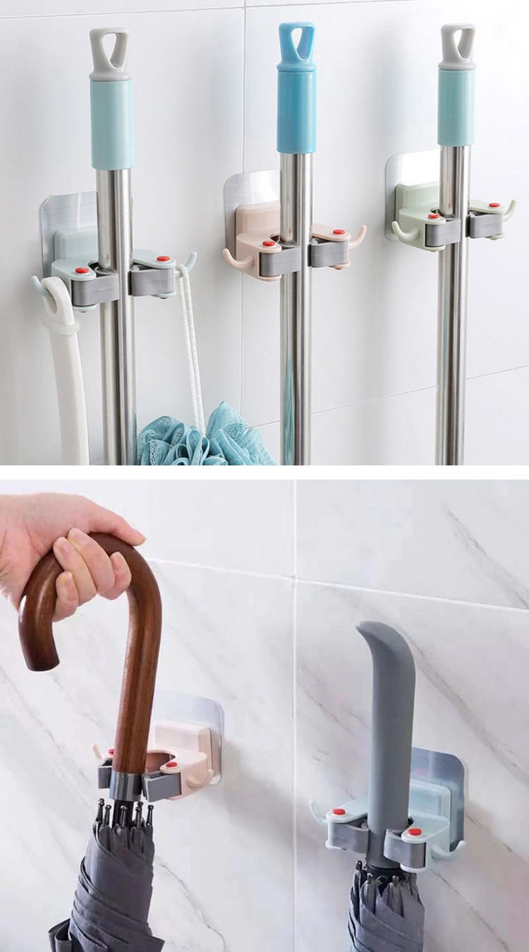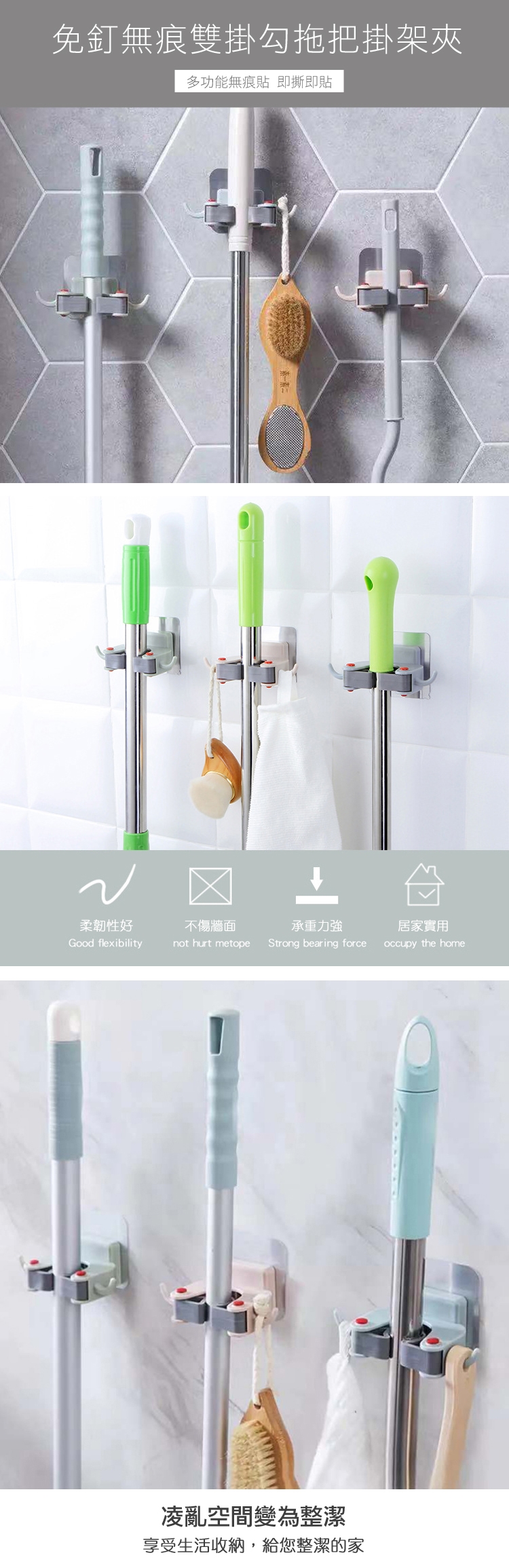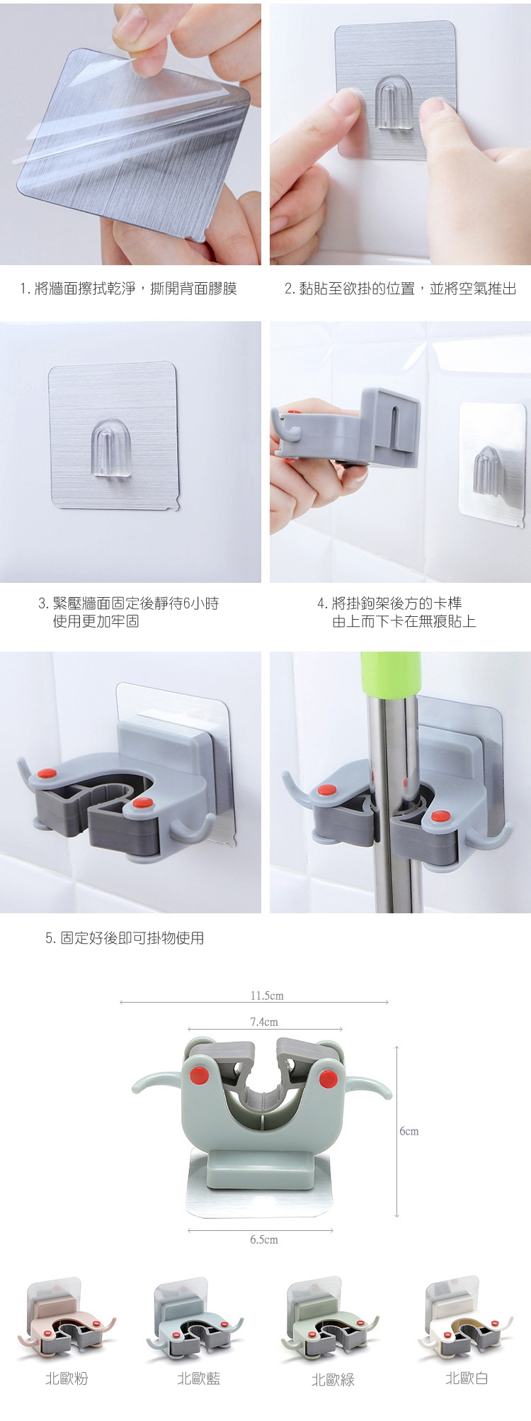 4.將掛鉤架後方的卡榫由上而下卡在無痕貼上,固定好後即可掛物使用