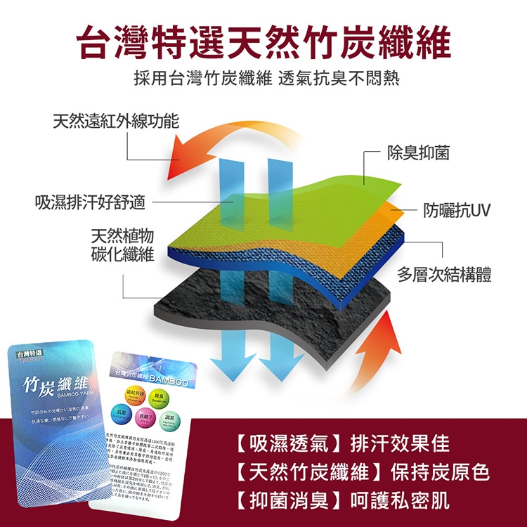 材質/ 43%聚酯纖維(竹炭纖維) 43%尼龍 14%彈性纖維