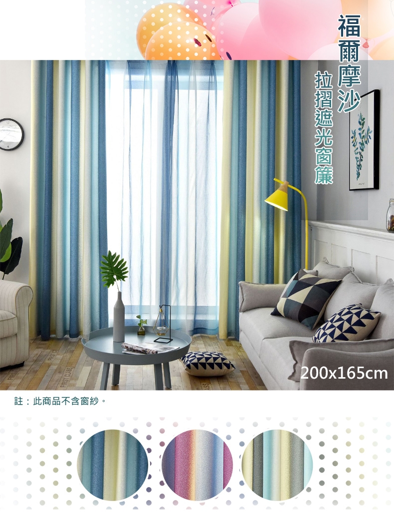 .主商品 :(半腰窗簾)寬200公分x高165公分【包裝附有】窗簾綁帶2條、掛勾1包、安裝說明書