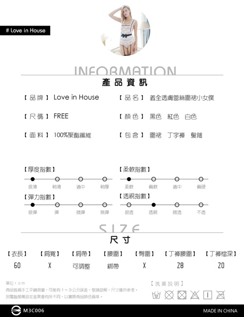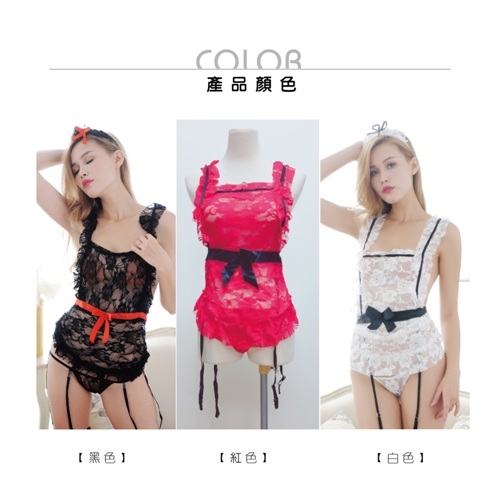 愛愛屋 嬌羞全透膚蕾絲圍裙小女僕