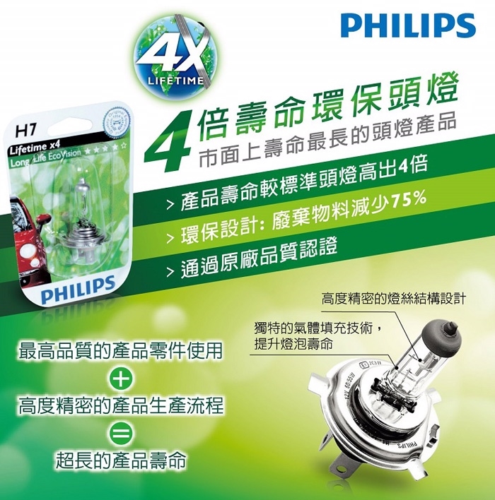 PHILIPS 飛利浦 四倍壽命環保車燈(公司貨 )