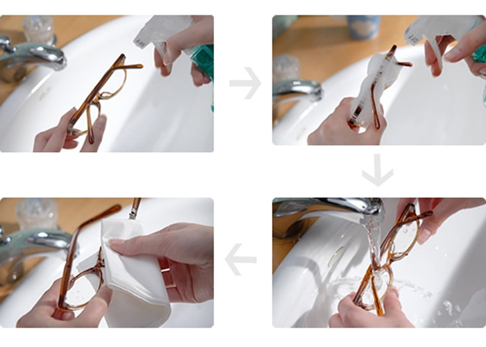 2.向眼鏡噴灑,直至眼鏡被泡沫完全覆蓋。