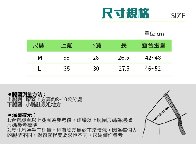 上腿圍內置防滑膠條,增加穩固性