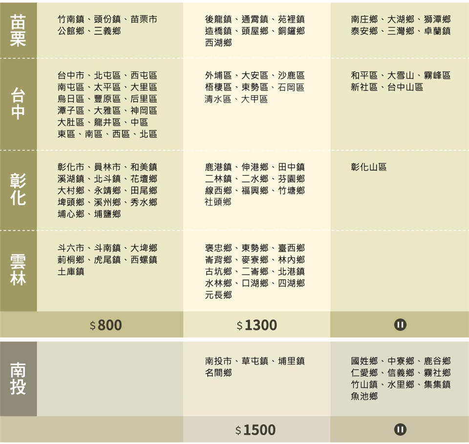 部分未載名偏遠鄉鎮區域本公司保有出貨與否權利!