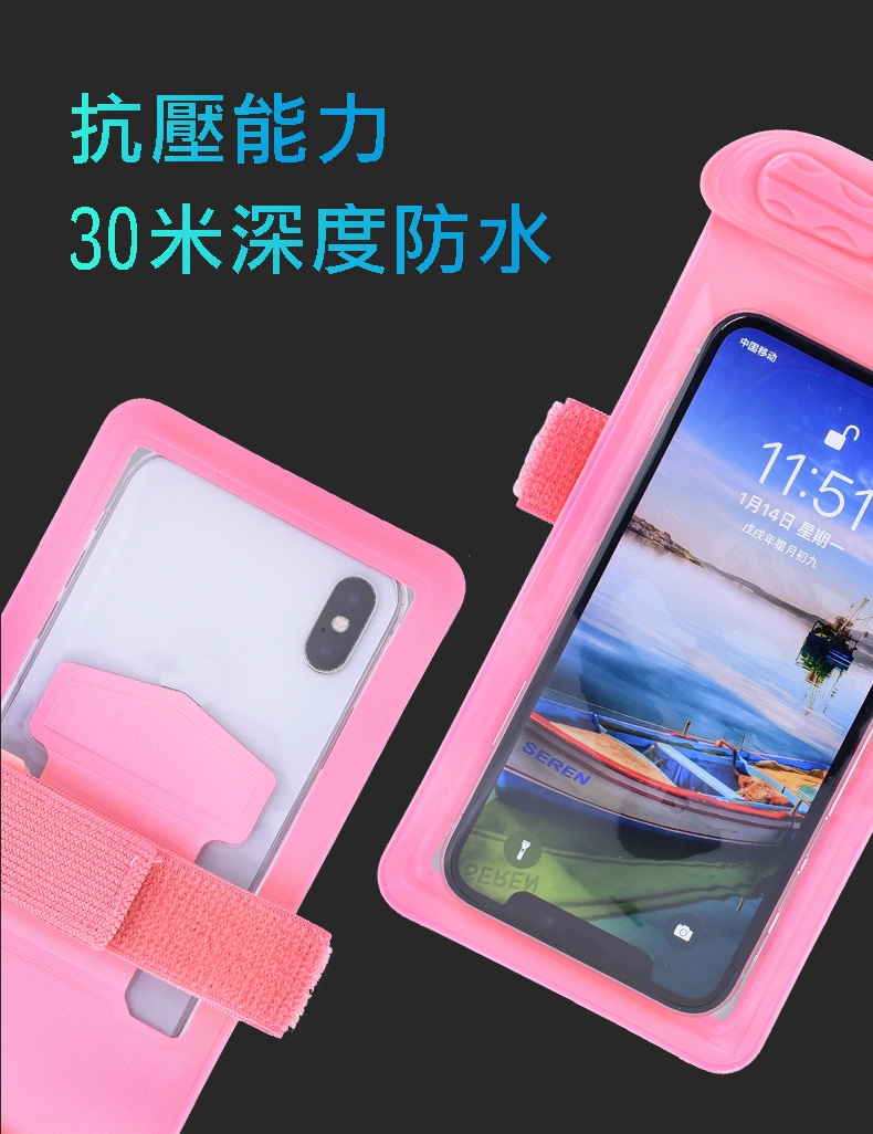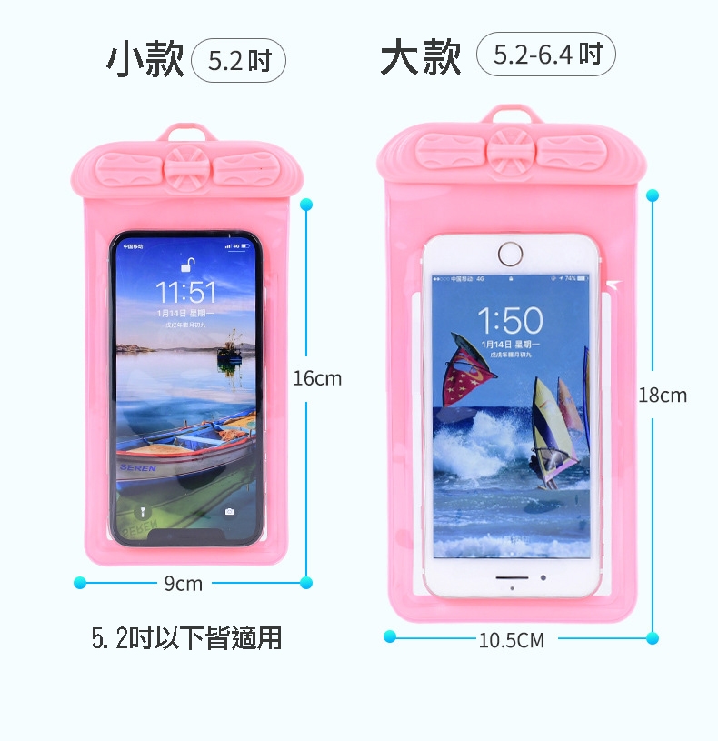 如果買大一點除了手機以外還可以裝一些零錢唷~去海邊兩手空空也不用帶錢包!