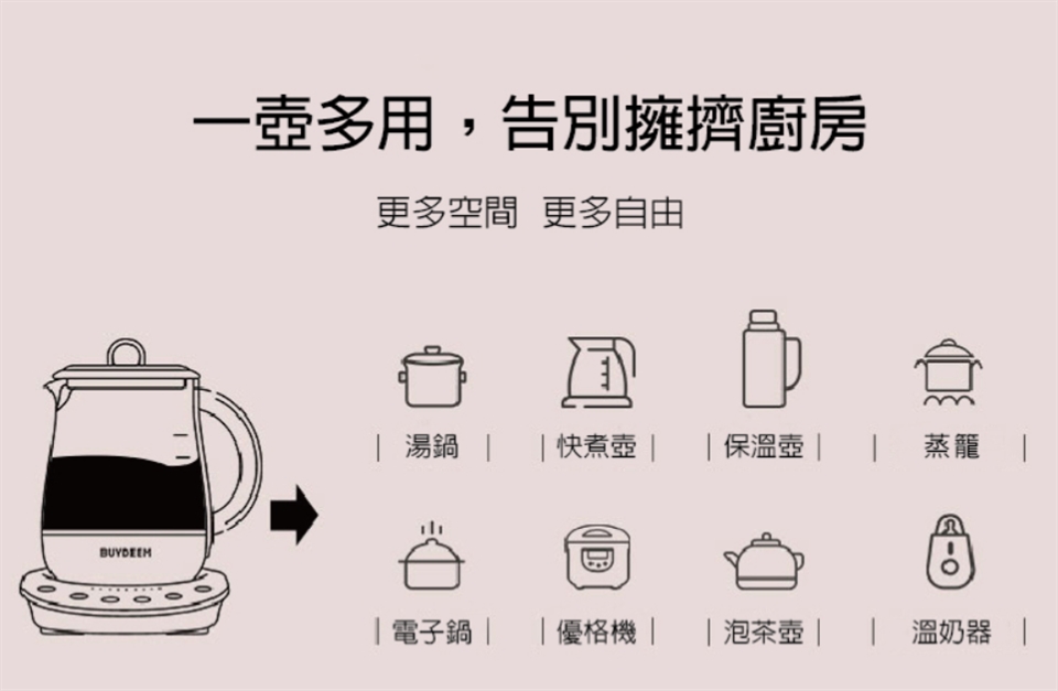 BUYDEEM 北鼎 粉漾款 K2691 多功能烹煮壺 1.5L