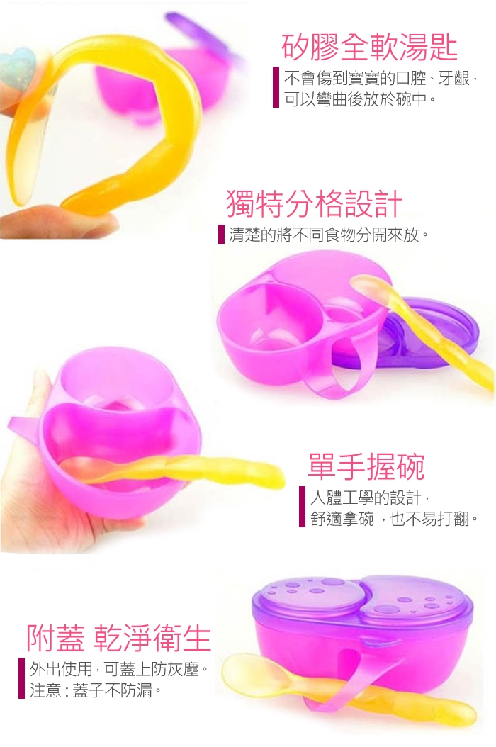 可以帶兩份或兩種食物。另附一支矽膠全軟湯匙。