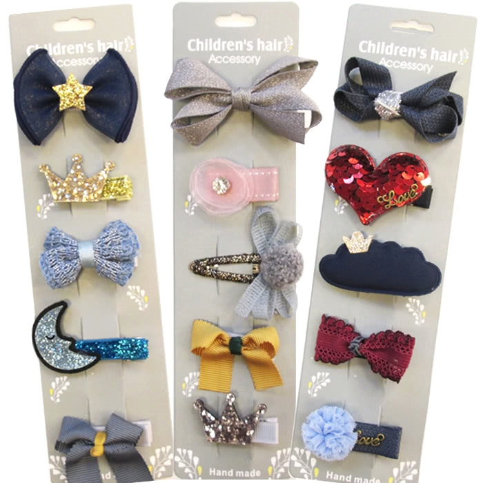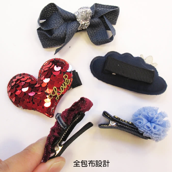 髮夾採用全包布設計,一次擁有5種不同的樣式,是小孩最愛的搭配配件