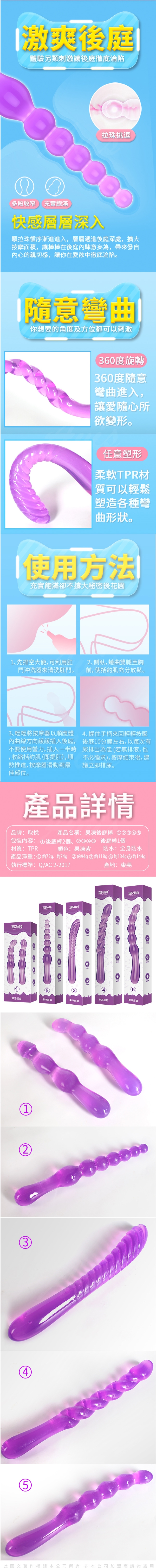 .商品名稱:果凍 360度隨意彎曲光滑觸感後庭棒