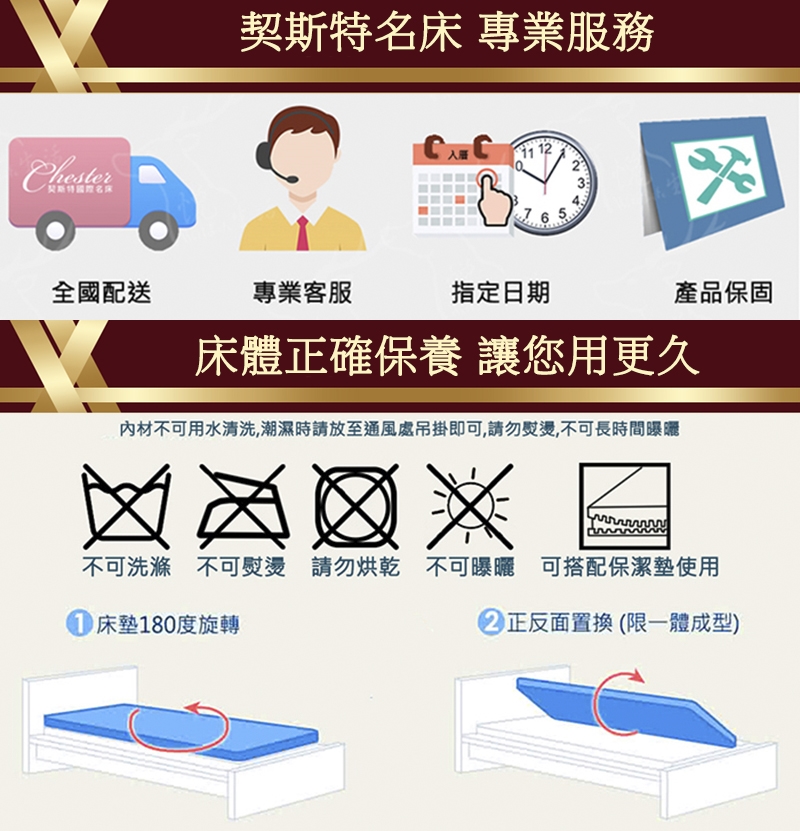 清潔保養方式:表布可水洗/可乾洗/不可烘乾/不可漂白/可用溼布擦拭
