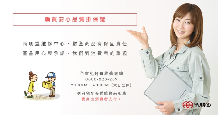 商品維修請自行送維修站,耗材品及人為因素使用錯誤導致商品毀損或故障,恕不在保固範圍內。