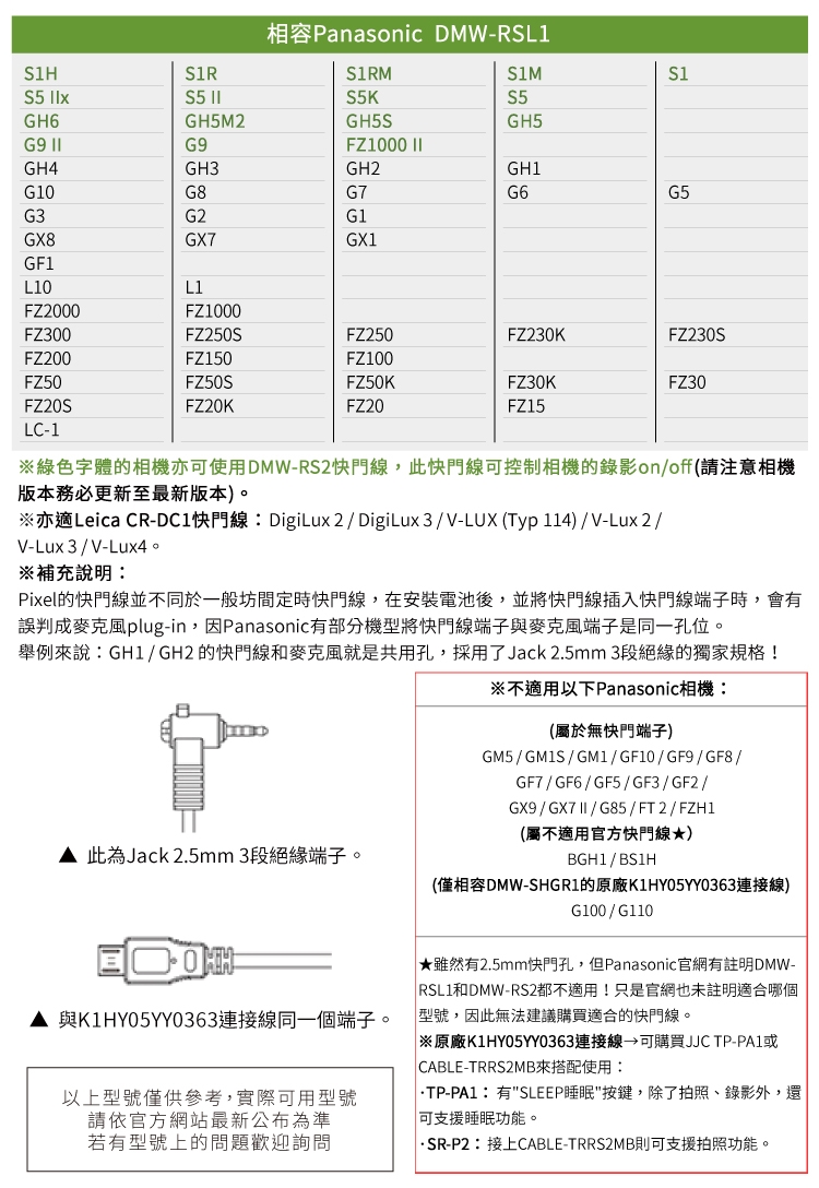 ●【品名】JJC相機槍把手把手HR+Cable-D,相容Panasonic原廠DMW-RSL1快門線